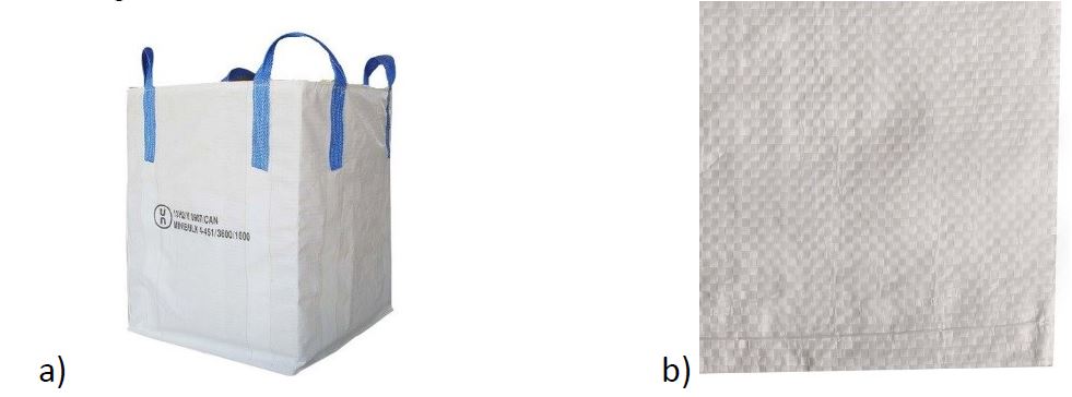 - Torba kompozytowa – torba wielomateriałowa, wykonana np. z tekstyliów oraz tworzywa. Przykład poniżej przedstawia torbę, gdzie do worka jutowego jest dołączony uchwyt z PP.