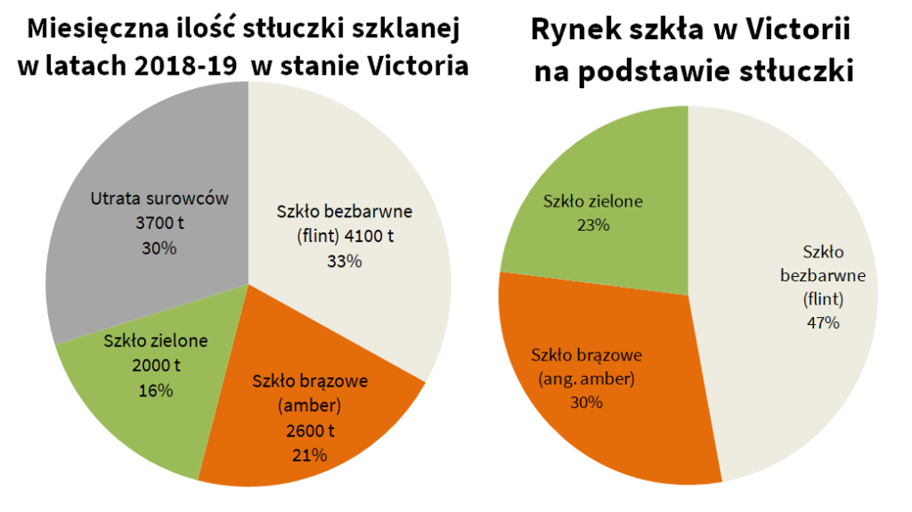 Tutaj również w zagranicznym Internecie cisza, brak ogólnorynkowych informacji poza cenami stłuczki. Finalnie znalazłem opracowanie z Victorii (jeden ze stanów Australii)[6] oraz prezentację dla inwestorów firmy Krynicki Recykling, zajmującej się uzdatnianiem stłuczki szklanej w Polsce i na Litwie dla hut[7].